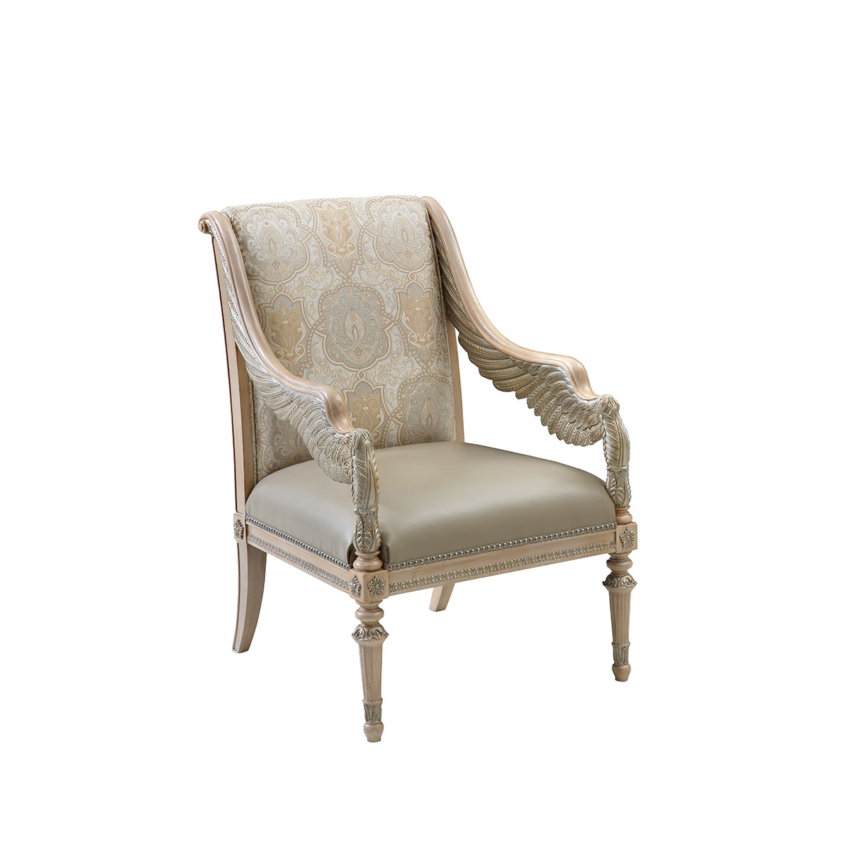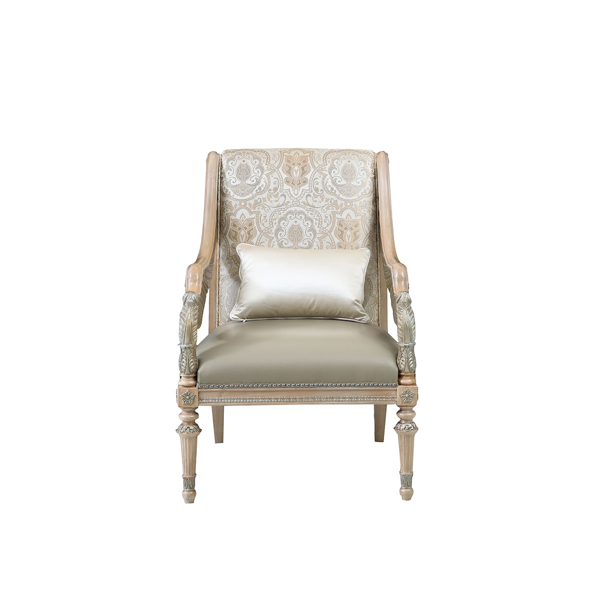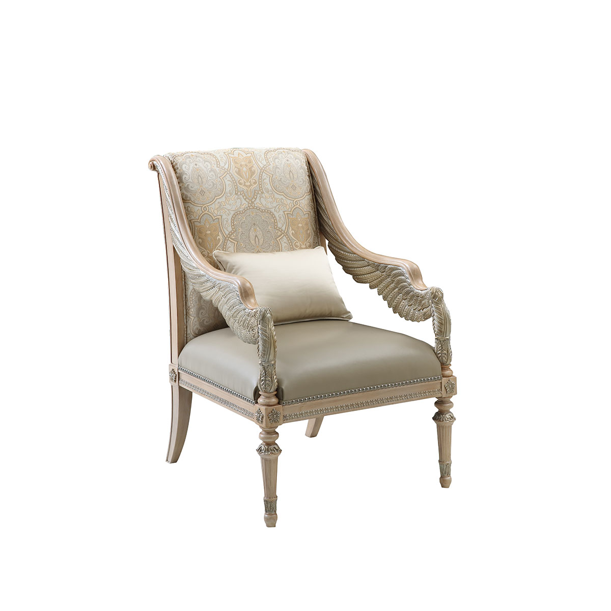 * 外形框架使用手工實木雕刻 * 椅背前后方及坐墊包有豐厚的填充物 * 提供多種面料可供選擇;