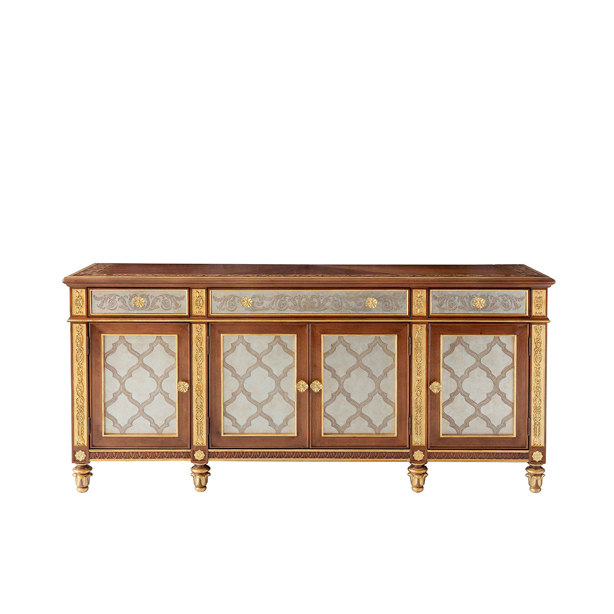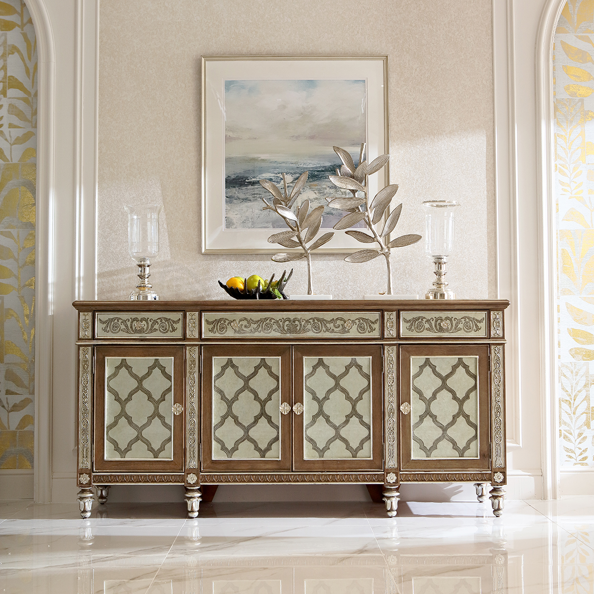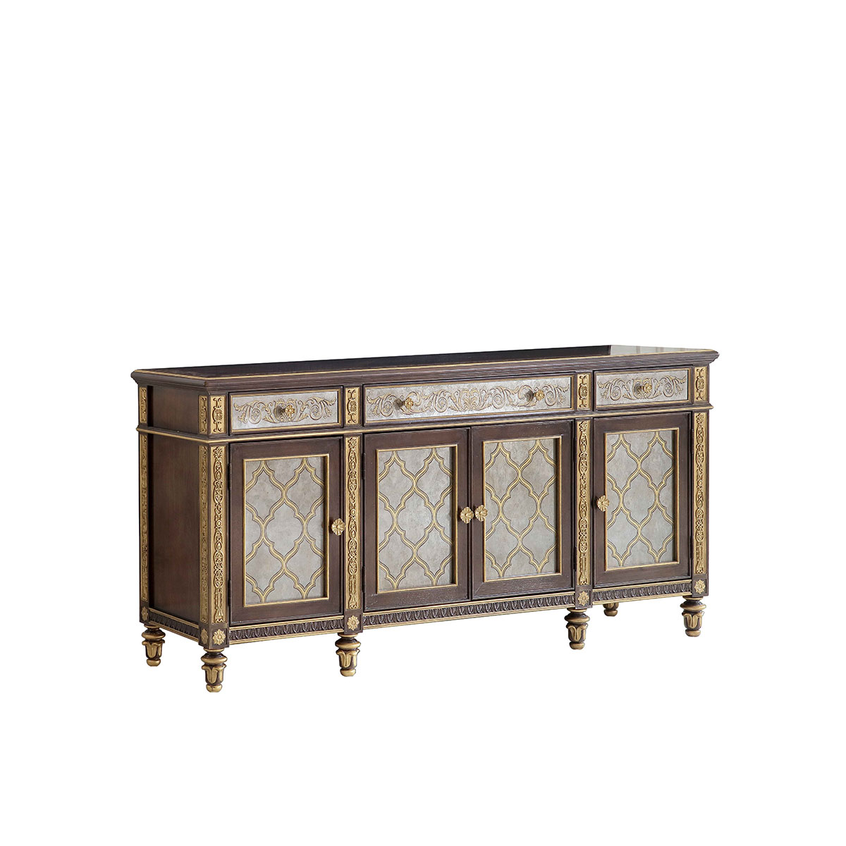 橡膠木+環保人造板+黑胡桃+艷陽花+櫻桃木等木皮貼面+藝術玻璃