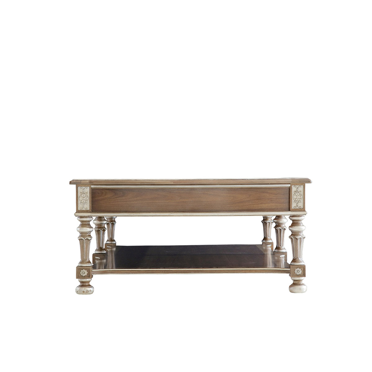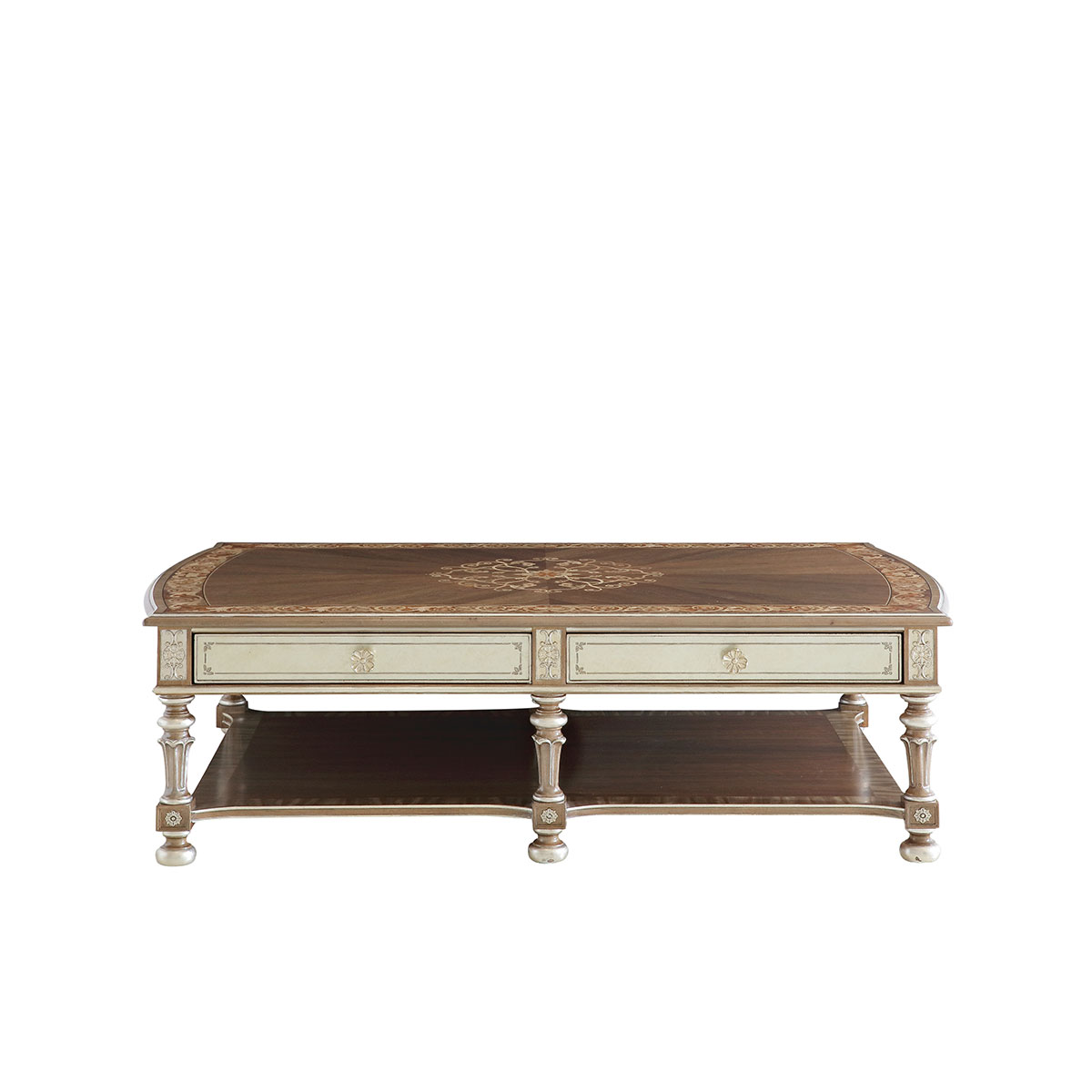 橡膠木+環(huán)保人造板+黑胡桃+艷陽花+櫻桃木等木皮貼面+彩繪玻璃