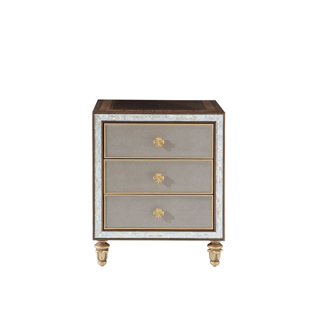 橡膠木+環(huán)保人造板+貝殼+黑胡桃+艷陽花+櫻桃木等木皮貼面+皮革