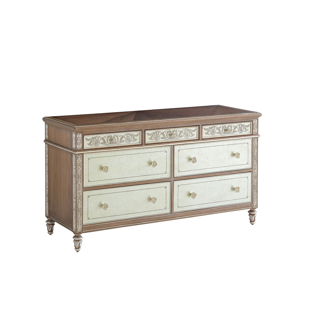 橡膠木+環保人造板+黑胡桃+艷陽花+櫻桃木等木皮貼面+藝術玻璃
