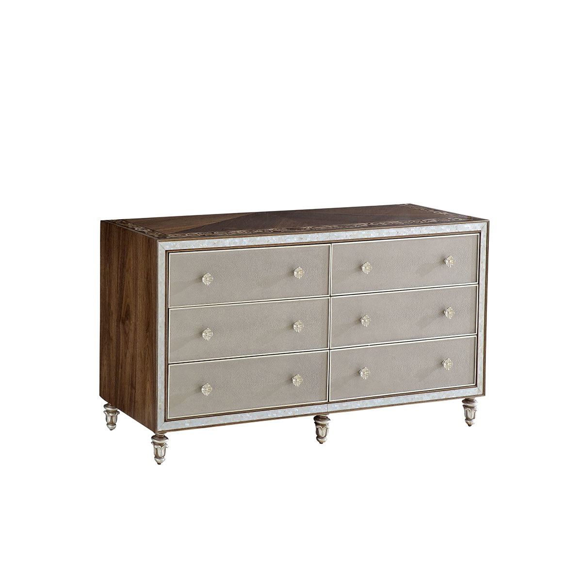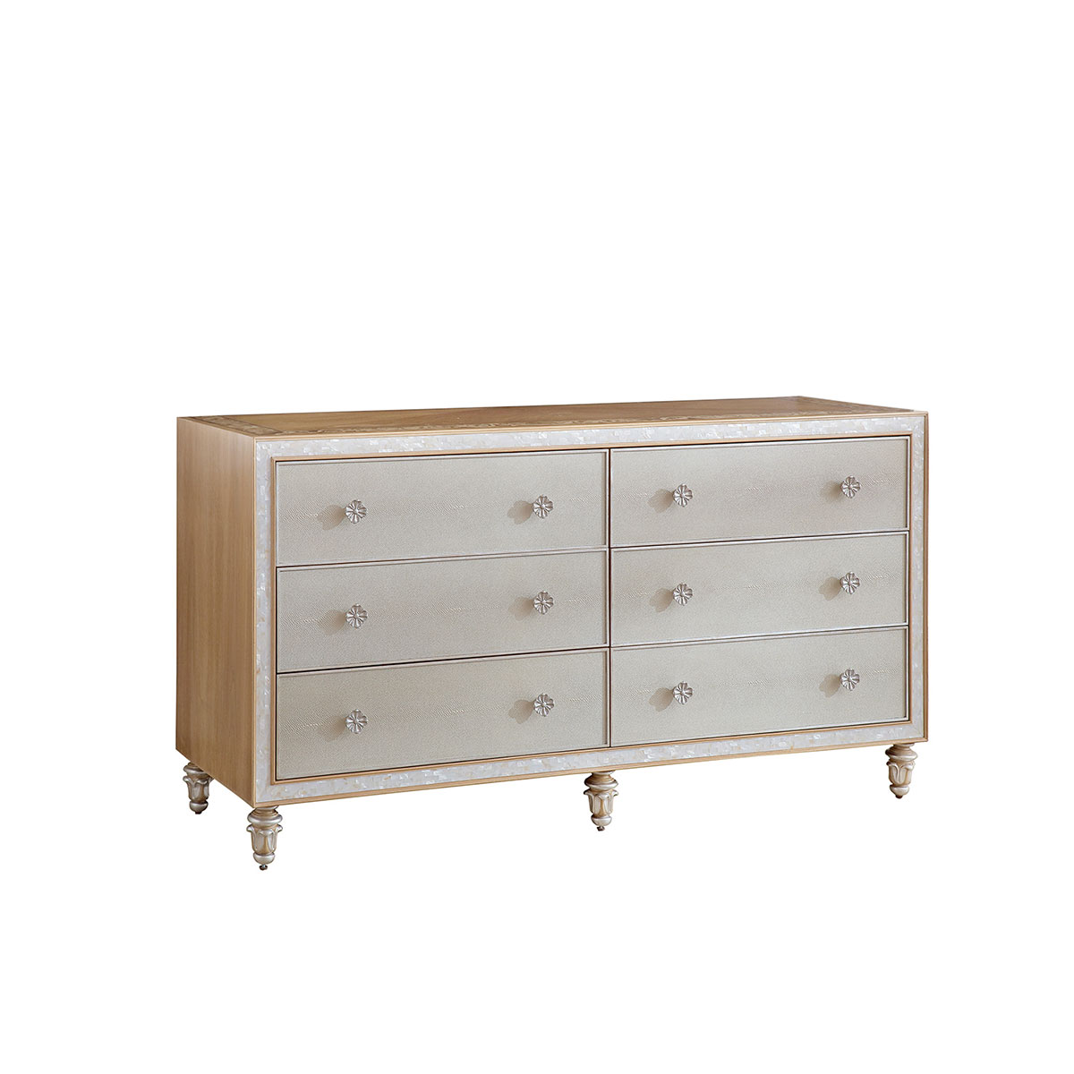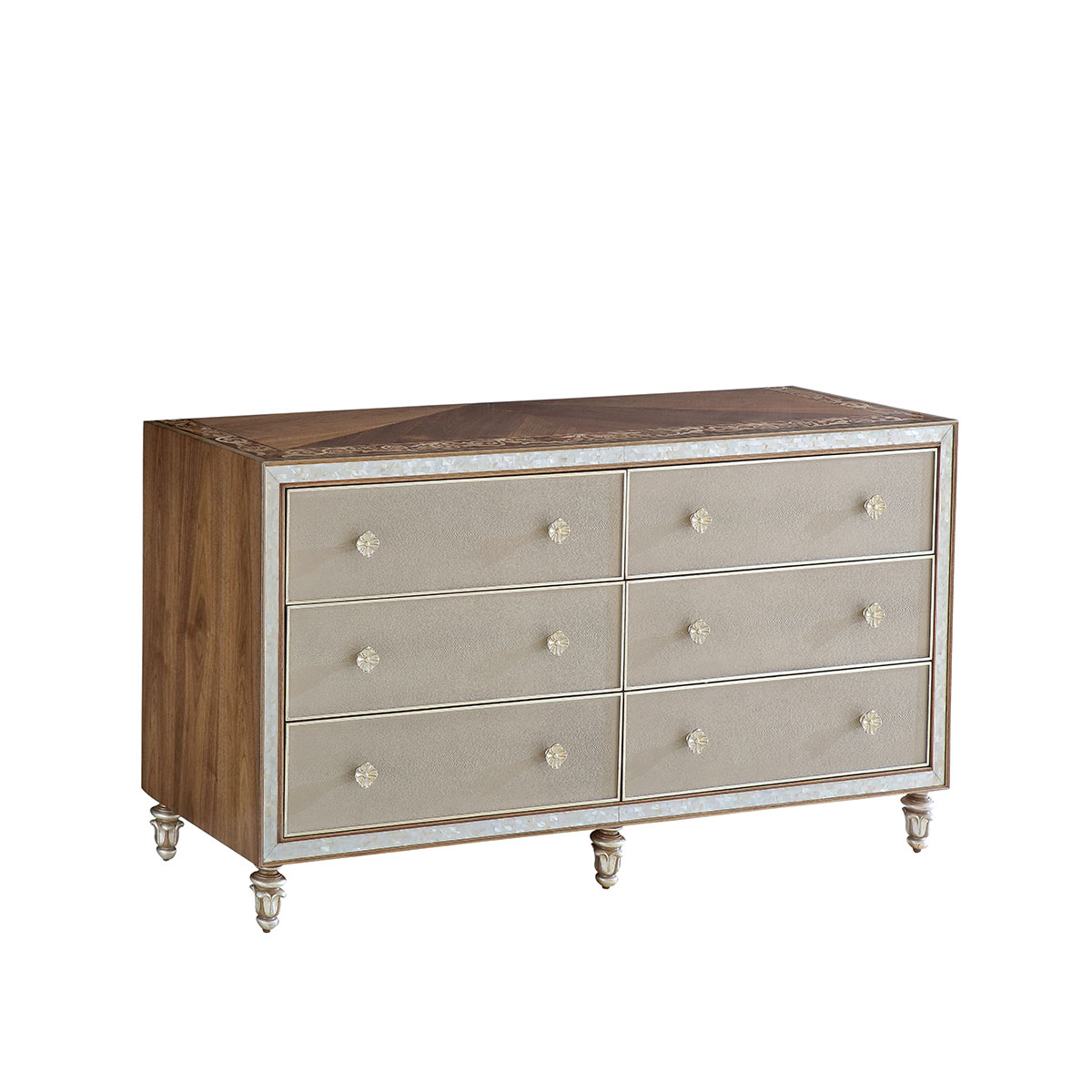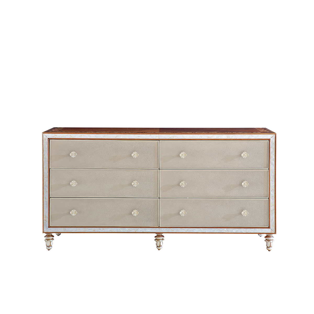 橡膠木+環保人造板+貝殼+黑胡桃+艷陽花+櫻桃木等木皮貼面+皮革