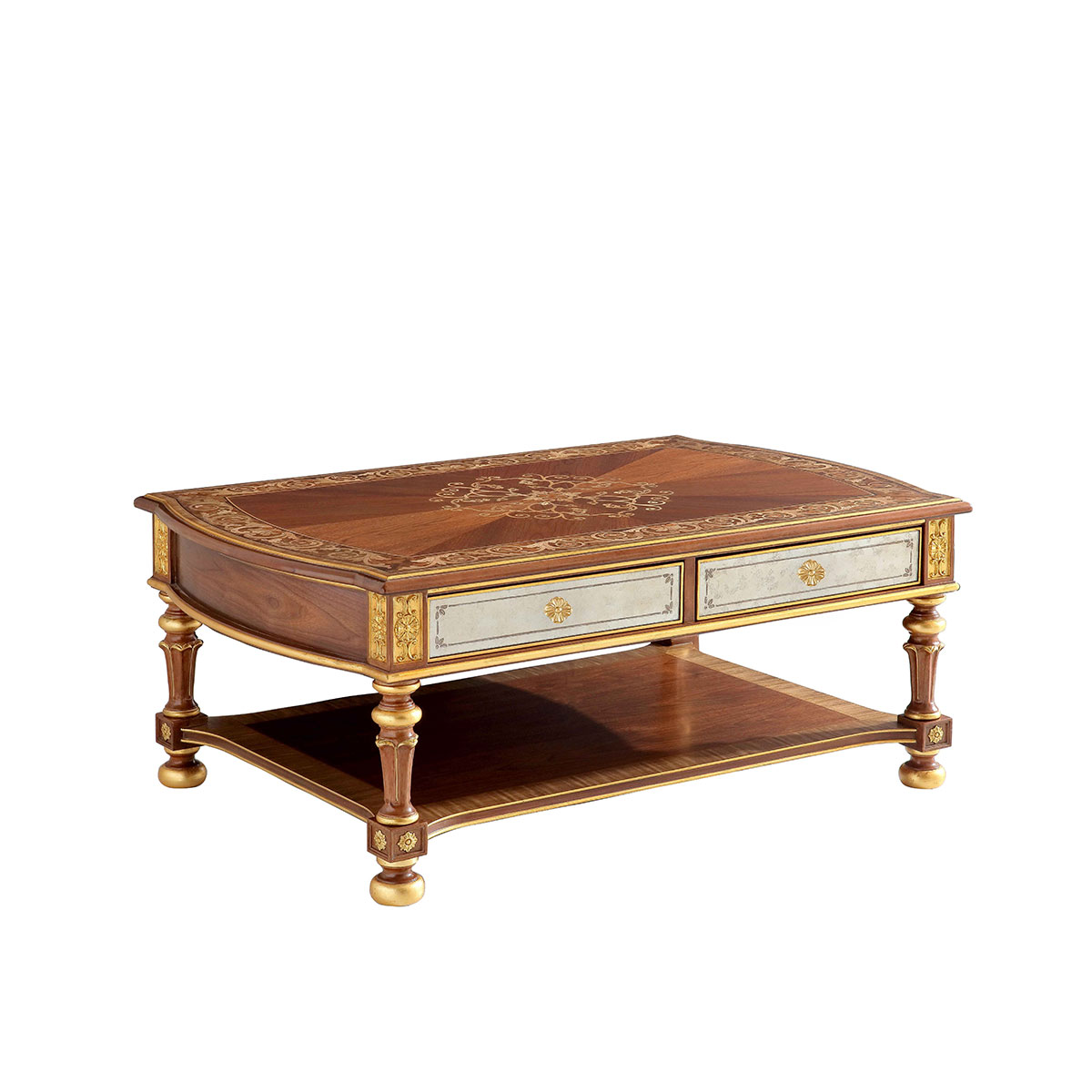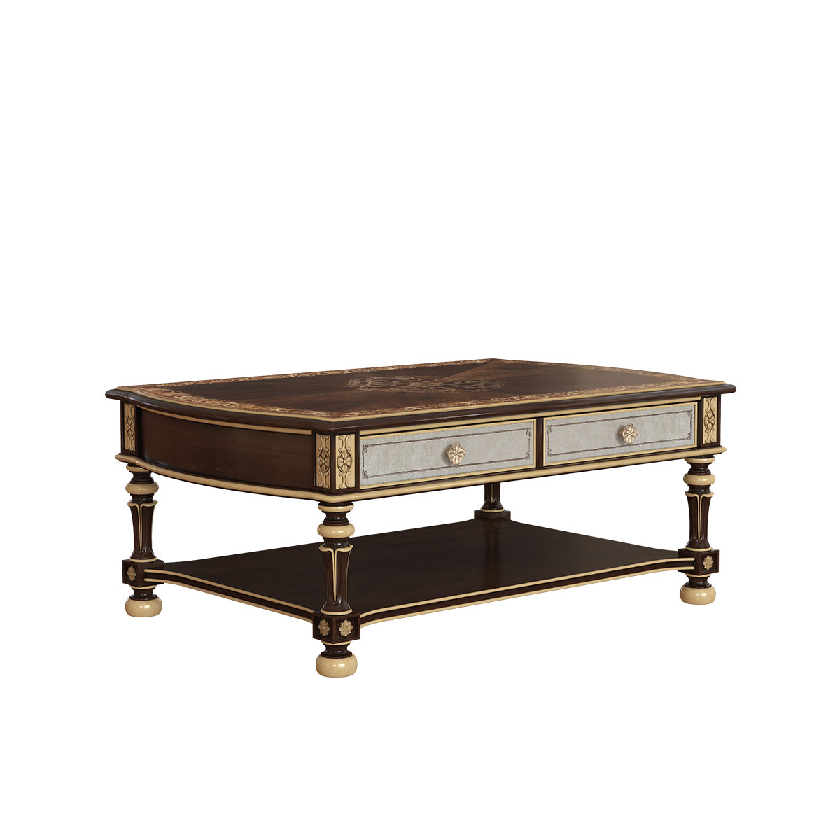 橡膠木+環(huán)保人造板+黑胡桃+艷陽花+櫻桃木等木皮貼面+彩繪玻璃