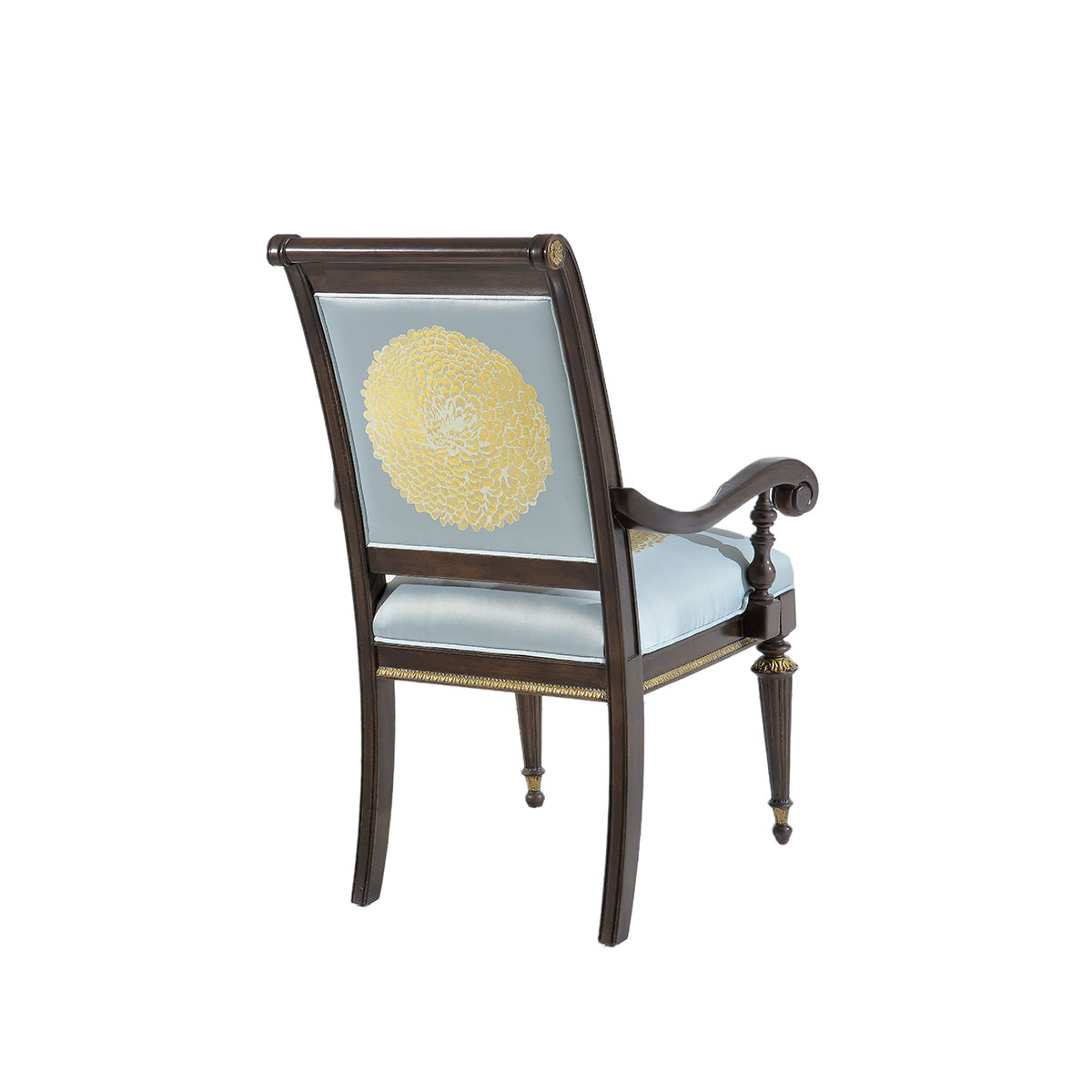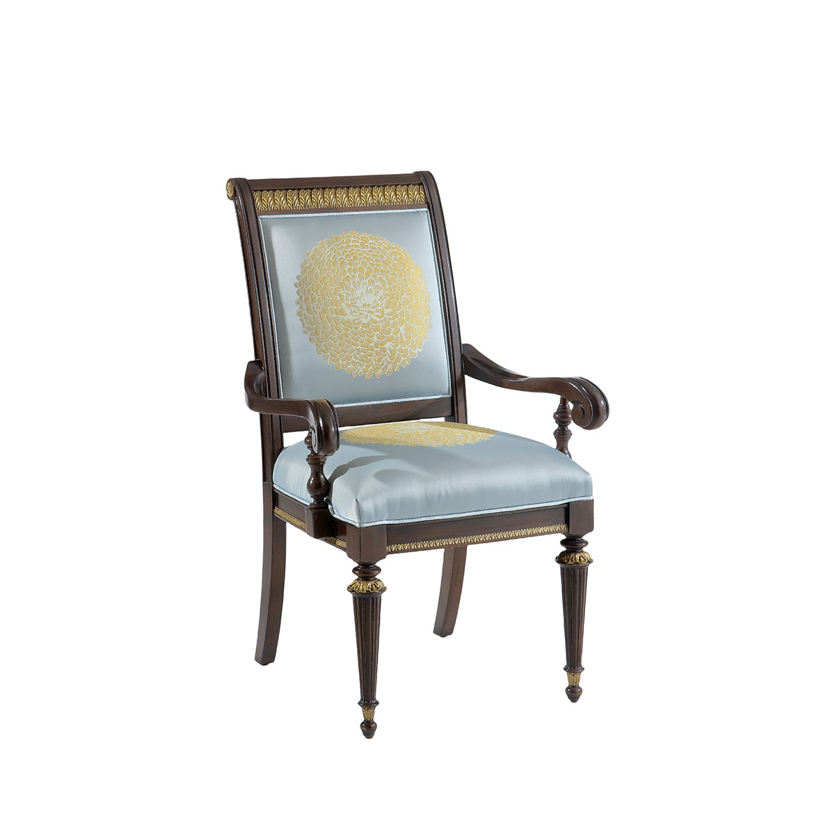 * 以17世紀(jì)意大利帝國EMPIRE風(fēng)格為設(shè)計(jì)元素,結(jié)合意大利人重生活懂藝術(shù)的品位追求,使用代表榮譽(yù)的月桂葉型雕刻和錐形的腿腳設(shè)計(jì)、精致的手工雕刻細(xì)節(jié)和描金工藝,以顯示王權(quán)的穩(wěn)固地位;搭配以意大利國花 ——雛菊為意念的金菊?qǐng)D案,還有布藝和厚實(shí)柔軟的填充物,精彩展現(xiàn)了意式家具奢華絢麗而又極富藝術(shù)人文氣息的迷人魅力。