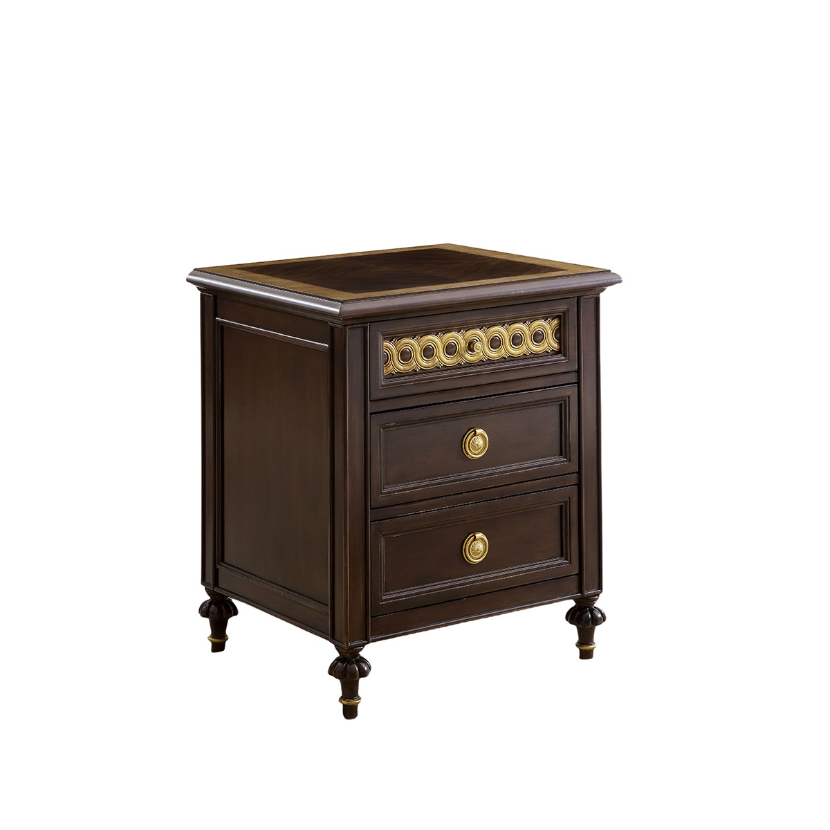 * 仿金箔工藝配上十八道油漆工藝讓每一件家具都是工藝品; * 三個儲物抽斗,而在其底部采用經(jīng)典硬木實木滑軌設(shè)計 * 多種木皮拼接工藝;