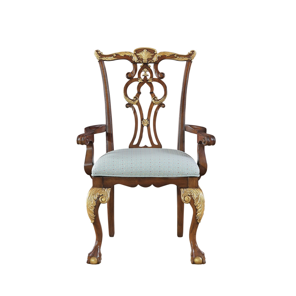* 為表現(xiàn)英國皇室的華麗和莊嚴,以英國溫莎堡為設計元素。從青花瓷花瓶得到靈感的Chippendale(齊彭代爾式)鏤空椅背和與卷葉雕刻結(jié)合的獸抓球彎腿設計,表達出王室的尊貴品位。配上精致的手工雕刻細節(jié)和貼金箔工藝,是豪華系列溫莎堡英式扶手椅的特色。