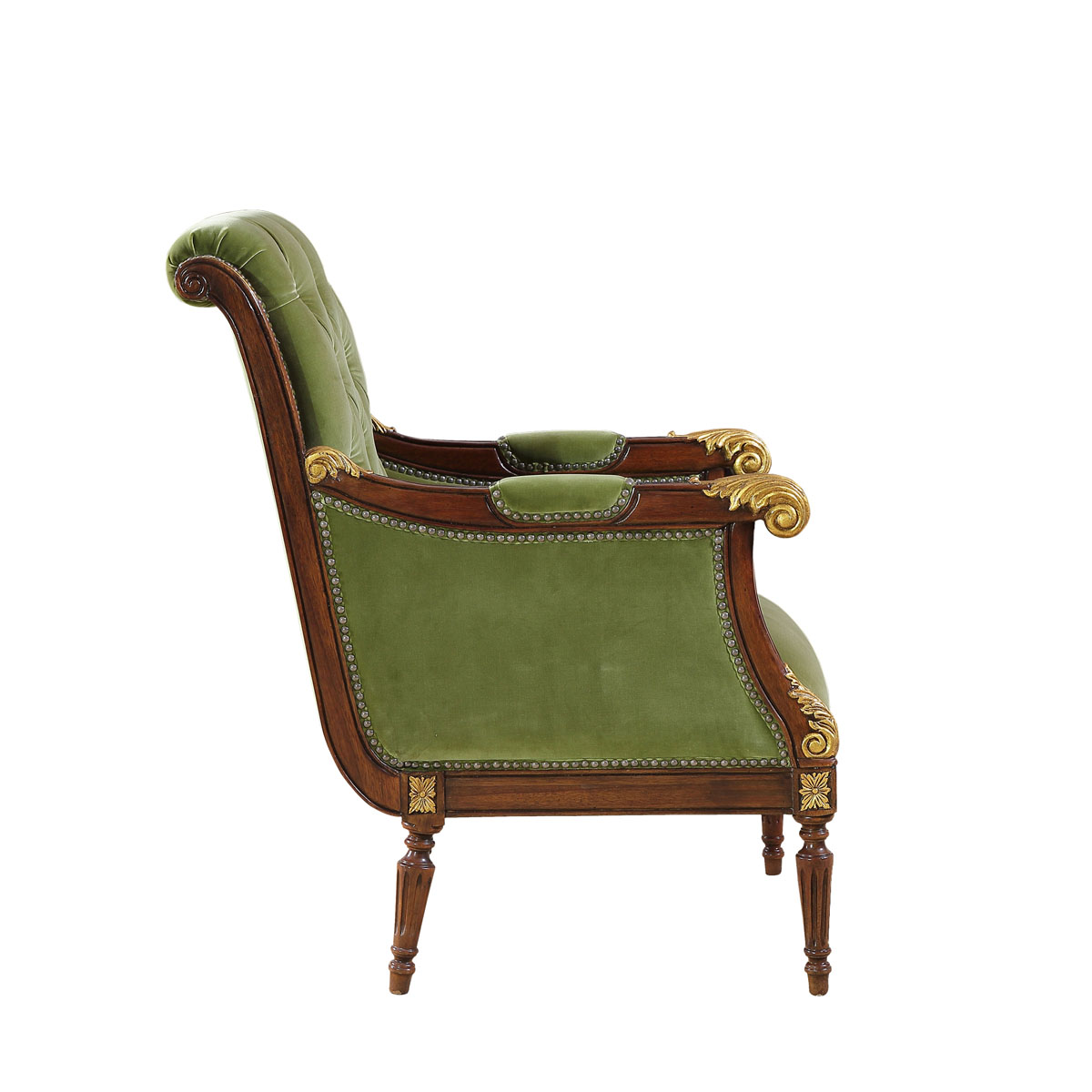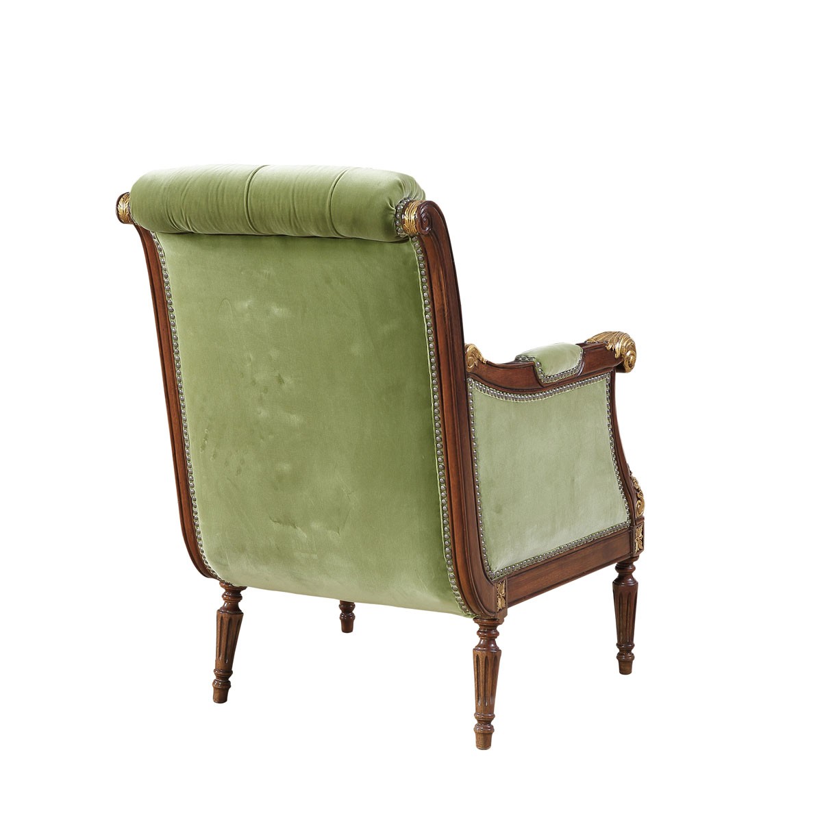 卷葉雕刻的扶手設計、舒適的椅背角度、細致的雕刻和貼金箔工藝。這款休閑椅是QueenVictoria(維多利亞女皇)時期的設計,我們還可以在她晚年的照片中找到它的蹤影。并配上觸感舒適的布藝和包有豐厚的填充物坐墊和靠背。