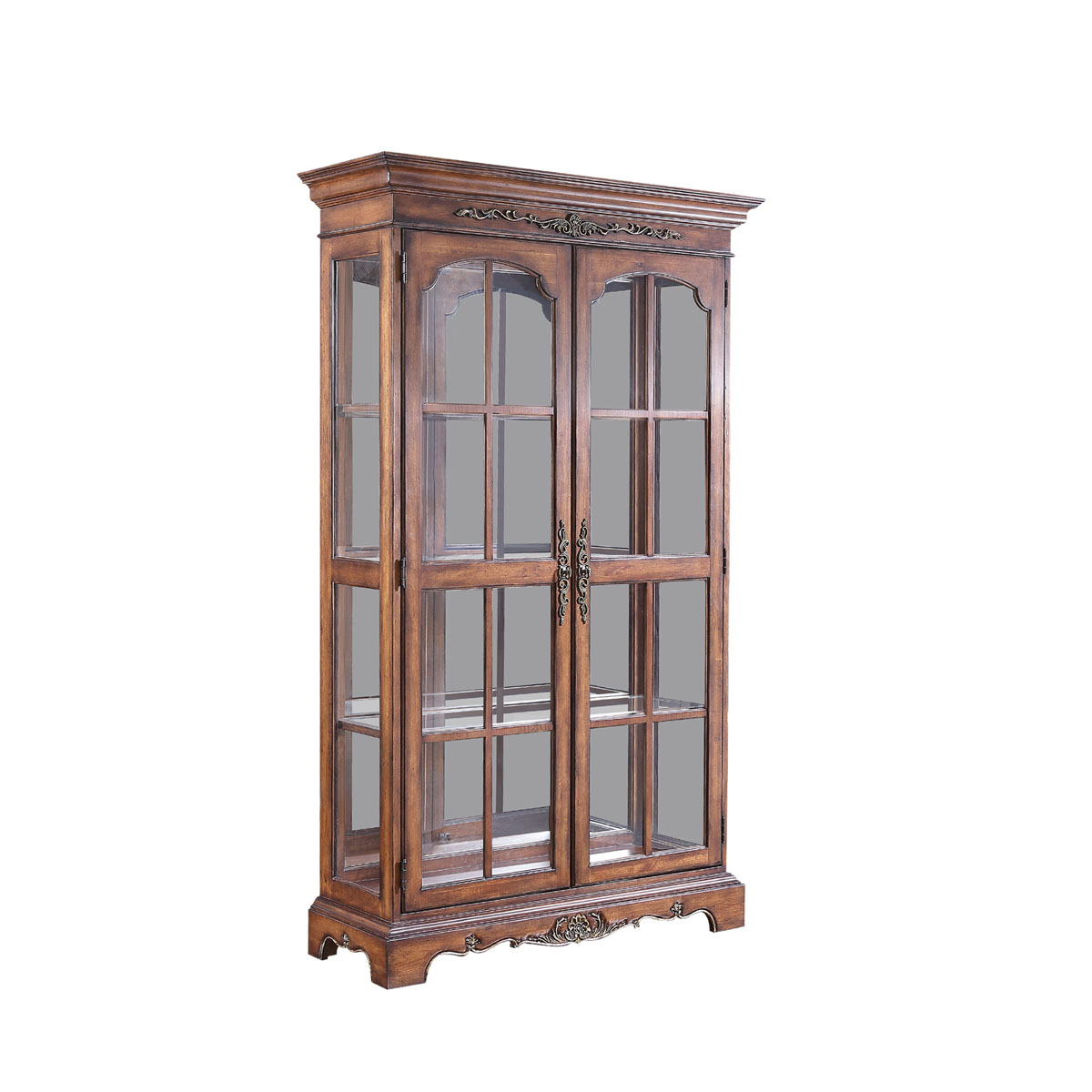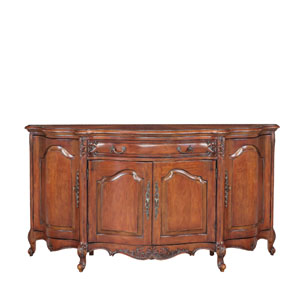 * 以法式門窗為設計意念, 使用窗格花和拱頂設計, 將東方的意韻與西方的韻味相融合,充分展現了生活藝術的魅力;木色與漆金的實木雕花形成強烈的對比,完美演繹古董柜獨有的風采。