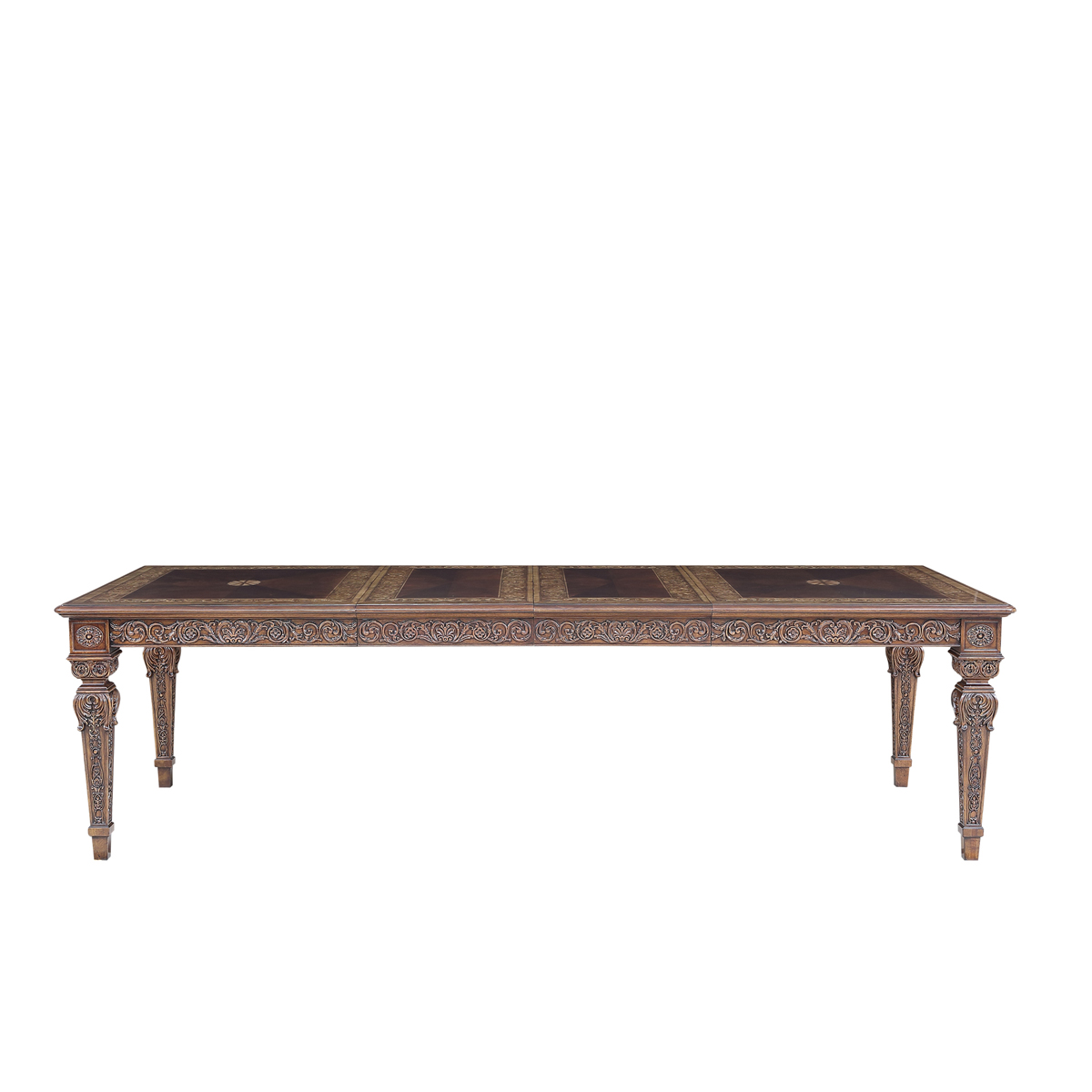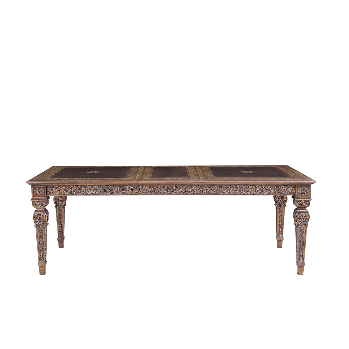* 以現位于美國白宮中象征友誼和權力的堅毅桌(英語:Resolute desk)為設計意念, 以實木拼貼和雕刻工藝,將具有紀念意義的歷史時刻融入其中,實用性的功能設計更是把藝術和生活完美結合, 是宮廷系列華盛頓美式餐桌的特色。