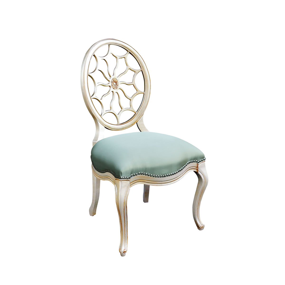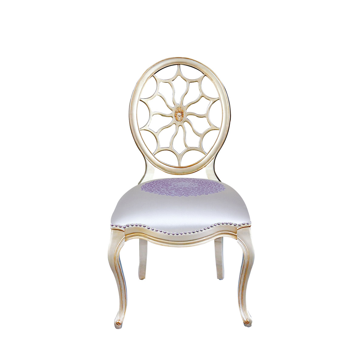 * 參考喬治三世時(shí)期的古董造型設(shè)計(jì),使用輪子構(gòu)造椅背和安妮王后腿,配以精致的手工雕刻細(xì)節(jié)和涂金工藝、布藝面料和厚實(shí)柔軟的填充物,是豪華系列凡爾賽玫瑰法式扶手椅的特色。