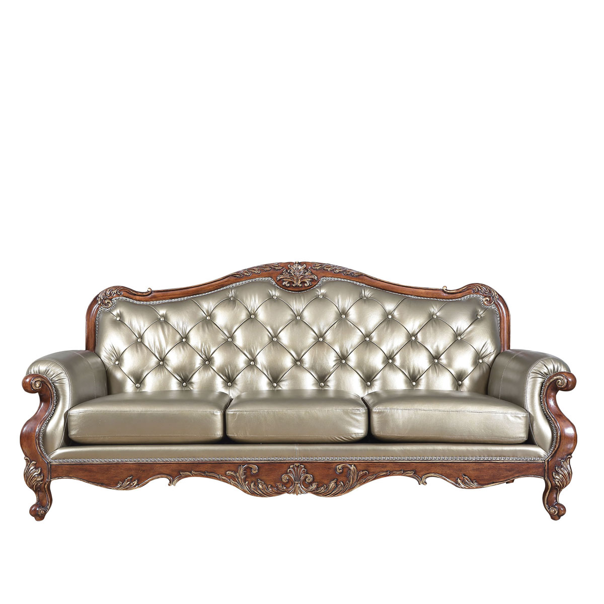 * 以法國杜樂麗花園中的植物元素為設計靈感,結合巴洛克風格,成為雕刻的主題圖案,如藤蔓和阿坎瑟斯卷葉。再加以優(yōu)美Camelback(駱駝背)的線條、彎腳和包有豐厚的填充物坐墊和靠背。