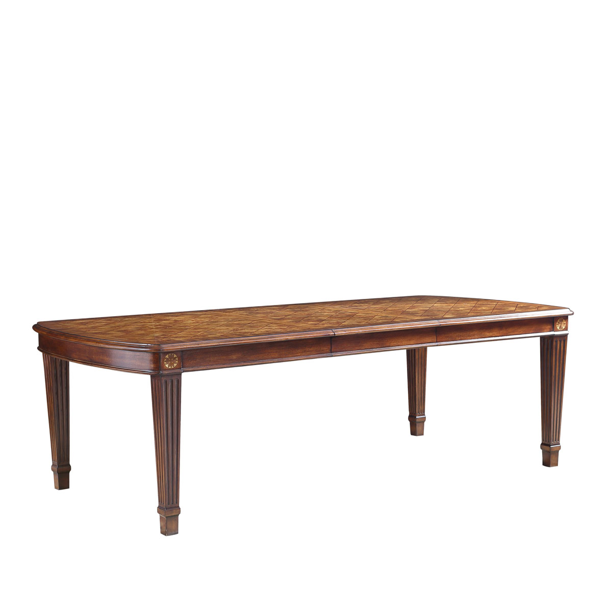 * 采用了喬治王朝后期流行的上粗下細(xì)帶槽紋方形腿,結(jié)合略帶弧度的線條與雅致的木皮貼面,將英式家具在新古典時(shí)期的芳容身姿展露無(wú)遺。