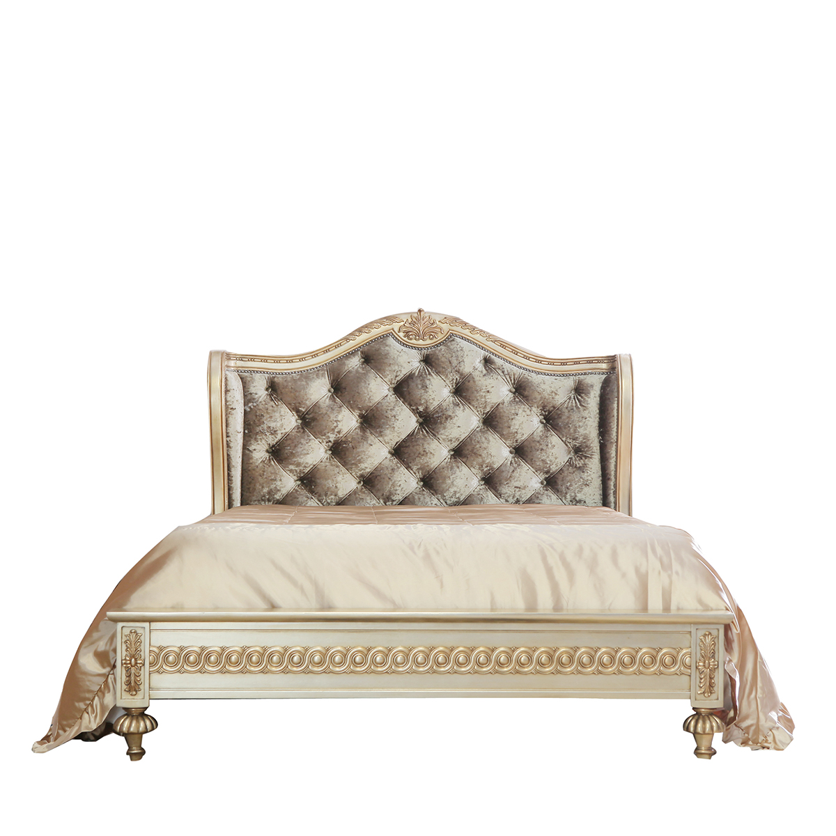 * 延伸的床架布滿手工實木雕刻的花環,卷葉和網眼圖案 * 4只花形雕刻腳 * 共3種尺寸選擇可適用多種戶型 * 中間使用優質夾板鋪平,延長床墊的使用年限 * 床頭板包有豐厚的填充物 * 床頭板可提供多種面料可供選擇;