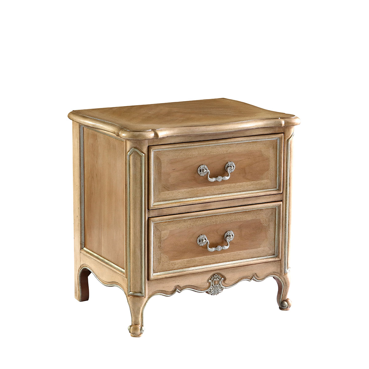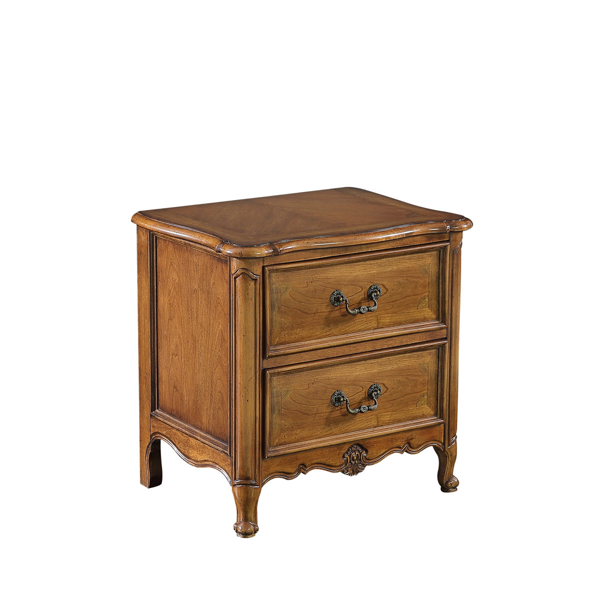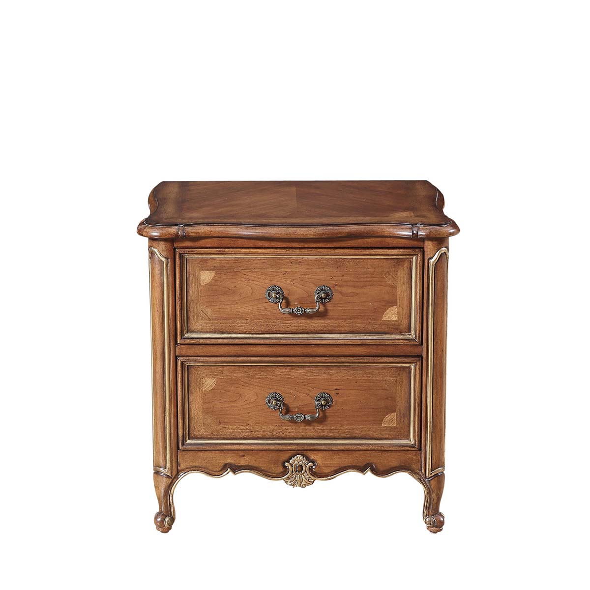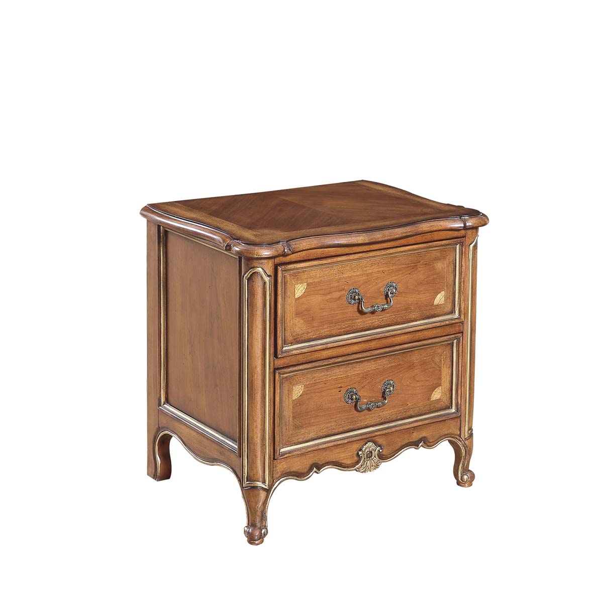 * 手工拼花藤蔓效果,用多種上等木皮拼制而成 * 二個儲物斗,底部采用經典的硬木實木滑軌; * 腳底部裝有可調腳釘