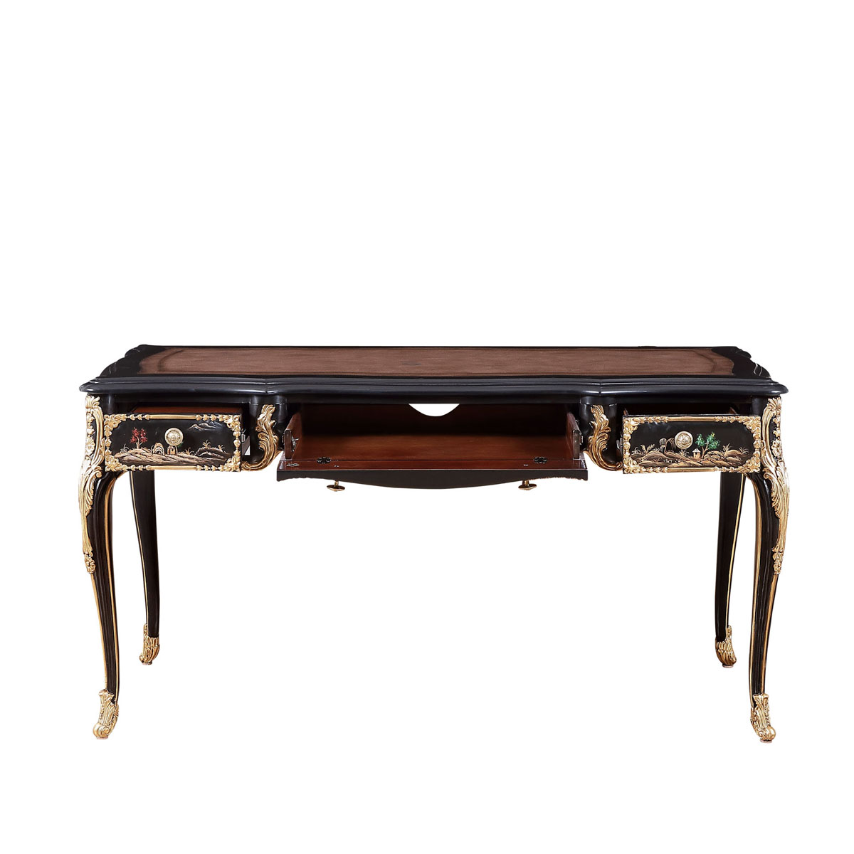 * 結合Louis XV (路易十五)時期洛可可風格雕刻彎腿與優雅的黑底金漆中國山水手繪,把法國凡爾賽宮中的經典呈現,表達法國宮廷的華麗與傳承。