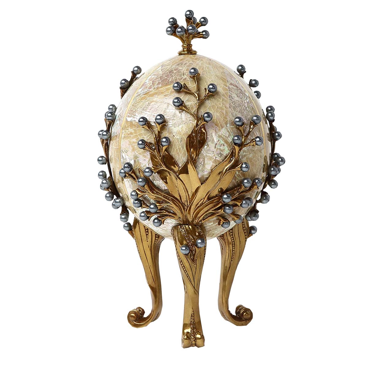 白色的貝殼鑲嵌+仿黑珍珠+鑄銅腳架