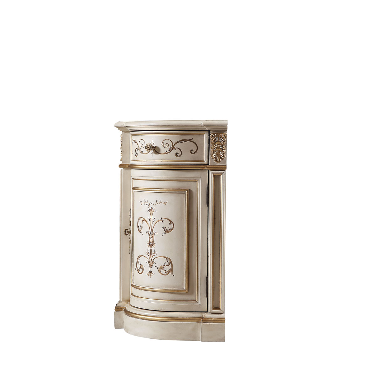 * 以意大利美麗而古老的城市維羅納為設(shè)計(jì)靈感,采用了多款手繪圖案,如寓意平安如意的花瓶裝飾、有“淑女之淚”雅稱的鈴蘭、傘形及珠寶裝飾、清新動人的花草等,配以帶仿古效果的色澤痕跡和閃耀的貼金箔工藝,來表現(xiàn)出藝術(shù)家具獨(dú)特的氣質(zhì)和內(nèi)涵,精彩演繹了意大利人對奢華絢麗的寵愛。