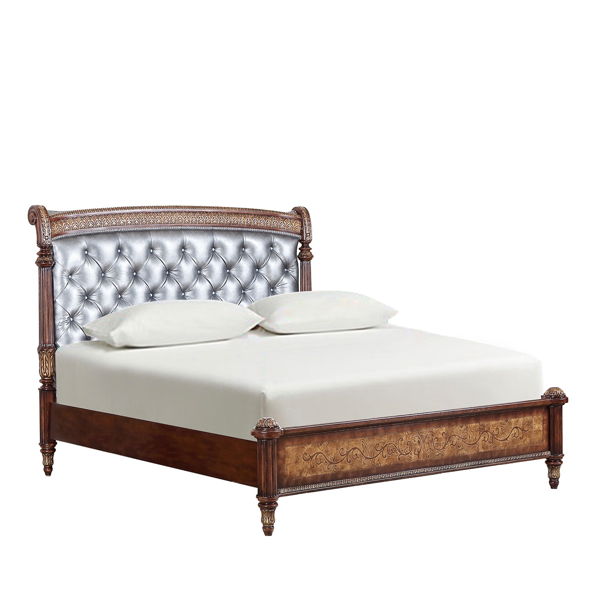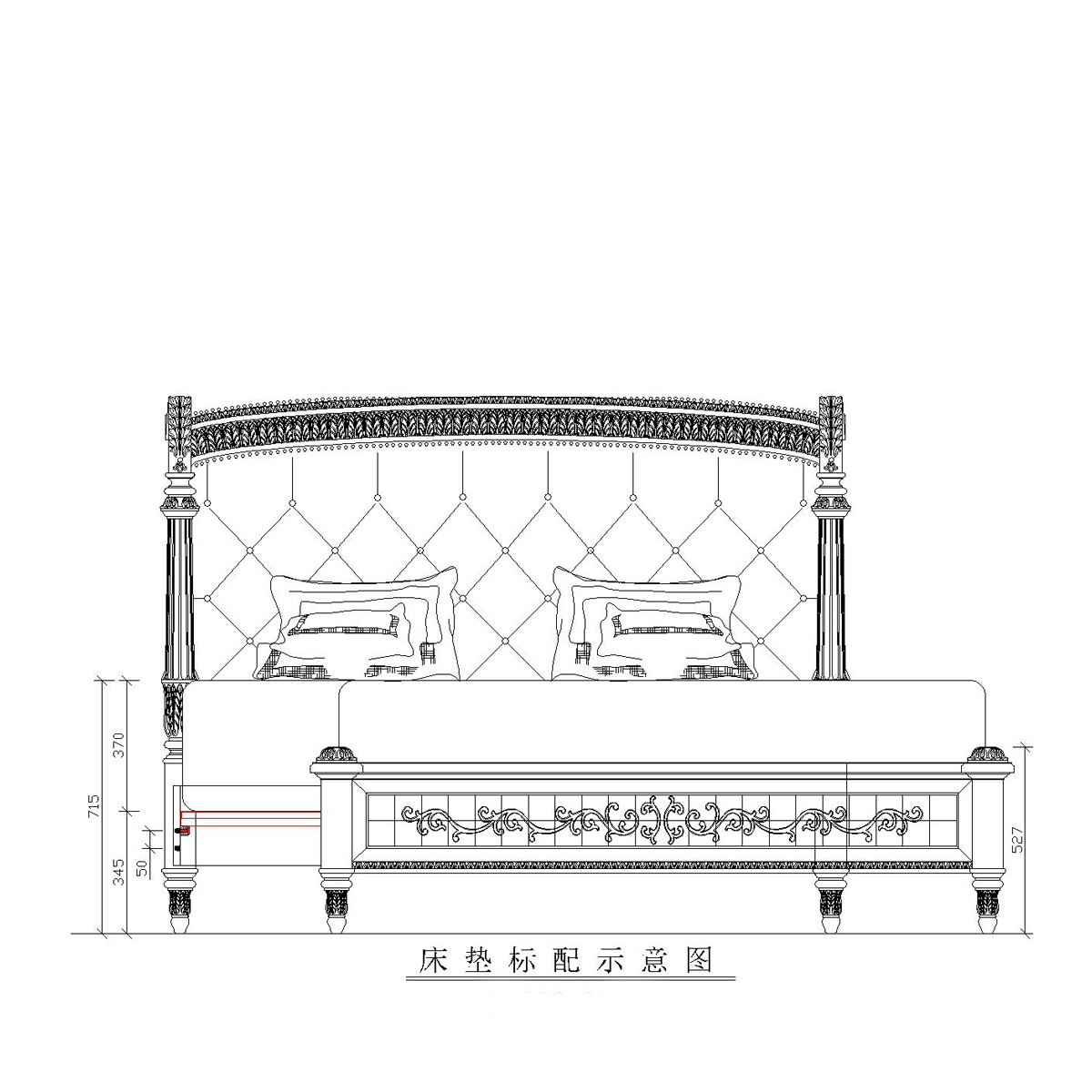 * 延伸的床架布滿手工實木雕刻的花環,卷葉和網眼圖案 * 4只花形雕刻腳 * 共3種尺寸選擇可適用多種戶型 * 中間使用優質夾板鋪平,延長床墊的使用年限. * 床頭板包有豐厚的填充物 * 床頭板可提供多種面料可供選擇;