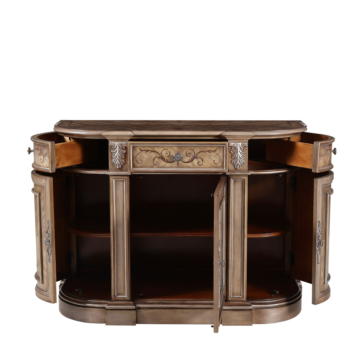 * 可作為臥室、餐廳、客廳或休息室的理想家具; * 三個儲物抽斗,底部采用硬木實木滑軌; * 三扇實木門板,門內各有一塊可調層板; * 腳底部裝有可調腳釘;