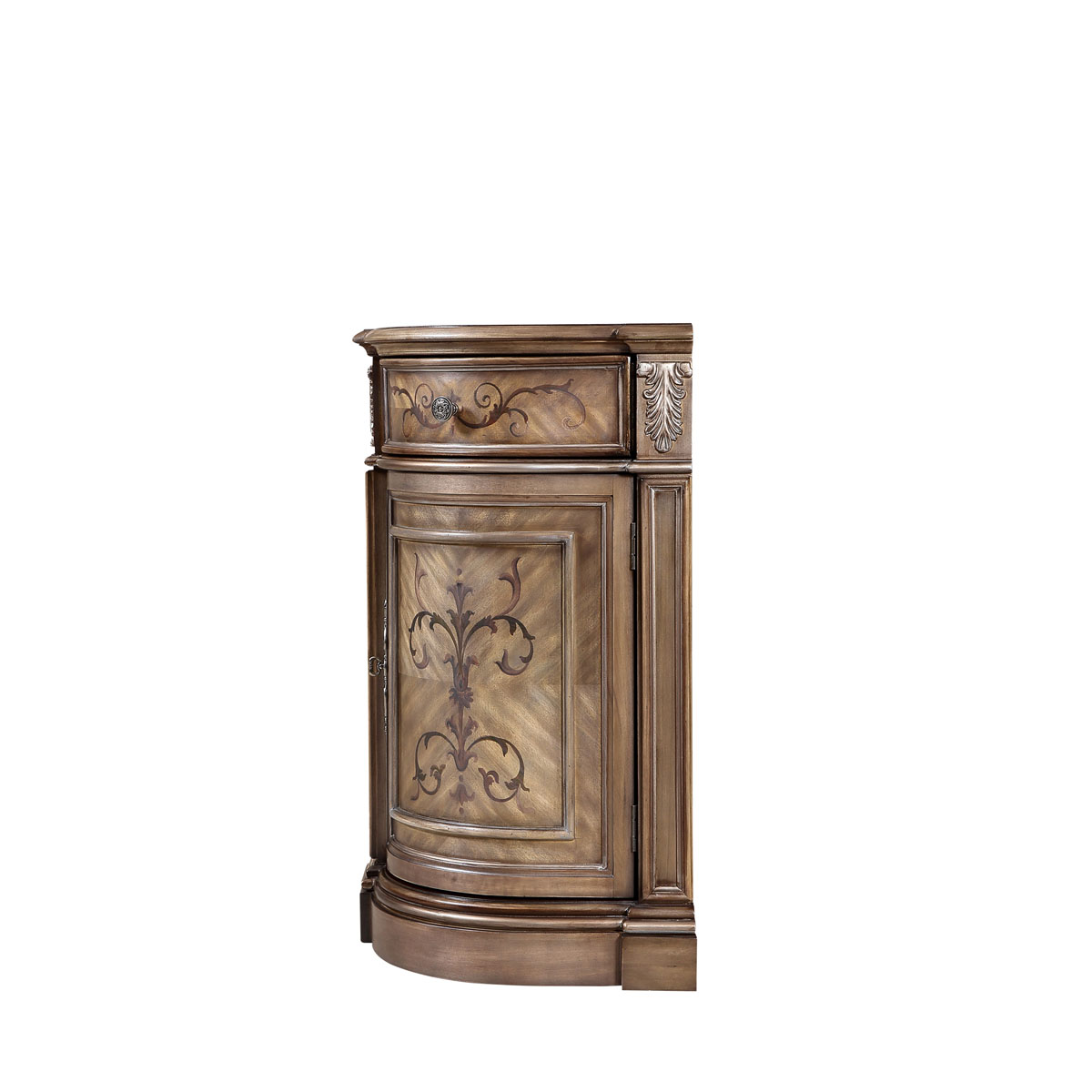 * 以意大利美麗而古老的城市維羅納為設計靈感,采用了多款手繪圖案,如寓意平安如意的花瓶裝飾、有“淑女之淚”雅稱的鈴蘭、傘形及珠寶裝飾、清新動人的花草等,配以帶仿古效果的色澤痕跡,來表現(xiàn)出藝術家具獨特的氣質和內涵,精彩演繹了意大利人對奢華絢麗的寵愛。