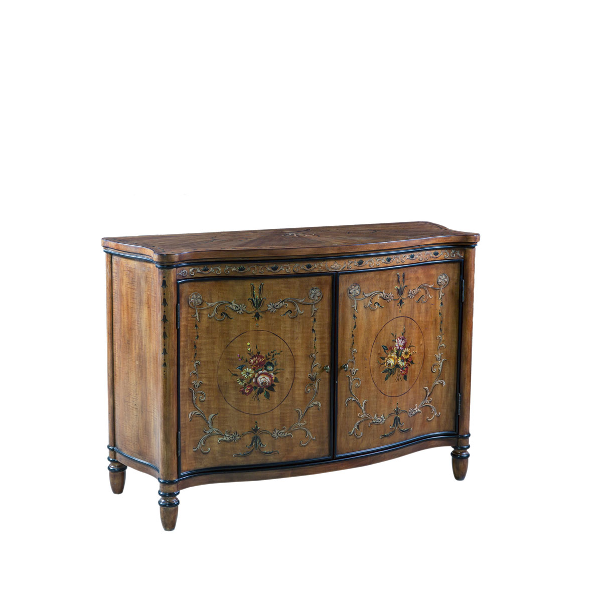 * 花紋圖案都是經(jīng)過專業(yè)工藝師精心繪制而成; * 兩扇彩繪實(shí)木門板,門內(nèi)各在一塊層板; * 腳底部裝有可調(diào)腳釘;