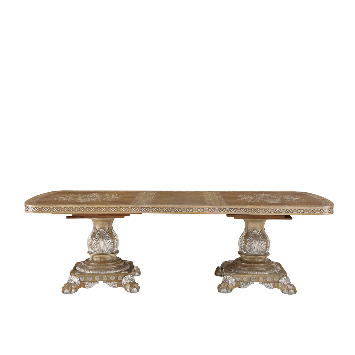 * 使用珍貴的材料拼貼而成的玫瑰花環、S形渦卷花紋和莨苕葉等裝飾,配以齊彭代爾式Chippendale獸抓球腳凸顯英國王室威儀,而金箔裝飾的卷葉雕刻怒放璀璨奢華,精心設計的小尺寸滿足所有戶型對貴族生活的鐘愛。