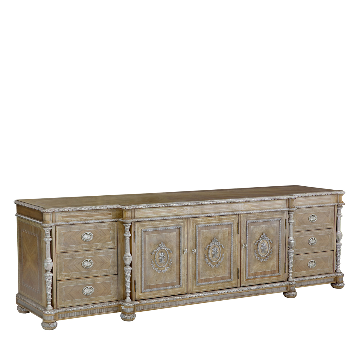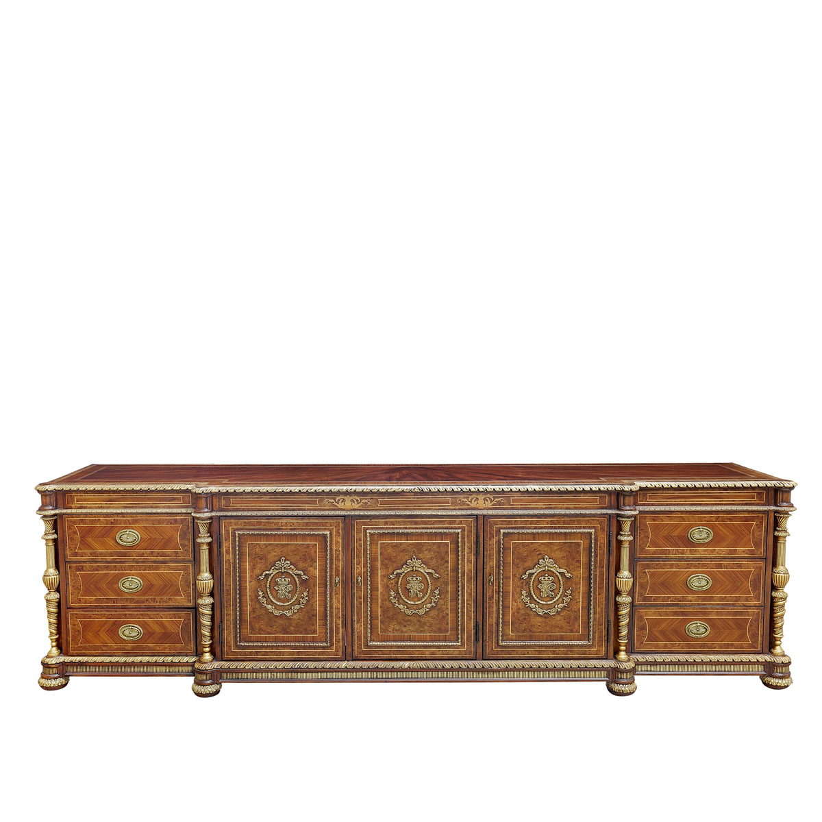* 經(jīng)典復(fù)古的造型凸顯溫莎城堡的恢弘氣勢(shì),英國(guó)皇室家具御用的桃花心木彰顯收藏價(jià)值,配上富麗輝煌的金箔貼飾與細(xì)膩的雕刻,實(shí)乃打造貴族品味生活的傳世之作。