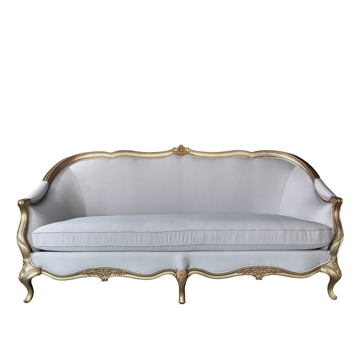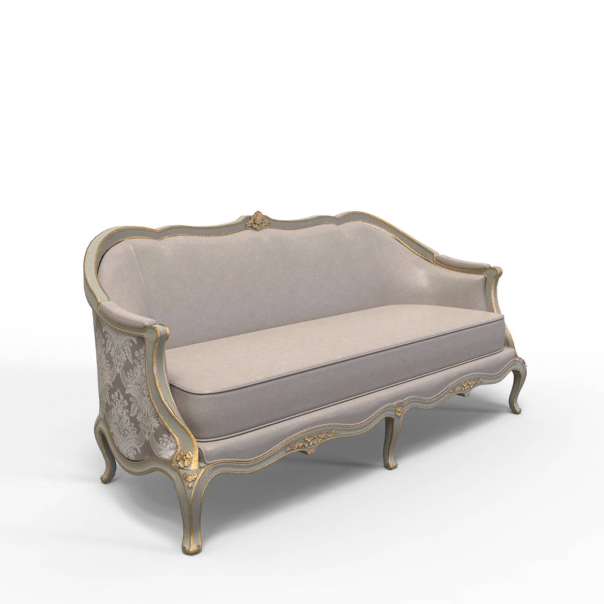 * 從法國十八世紀初攝政時期的風格中汲取靈感制作而成,采用了同風格的彎腳設計,阿坎瑟斯葉雕刻造型和金箔貼飾,再飾以繁花綻放圖案的絲綢和包有豐厚的填充物坐墊和靠背,使得這款沙發閃耀著華麗高貴的光環。
