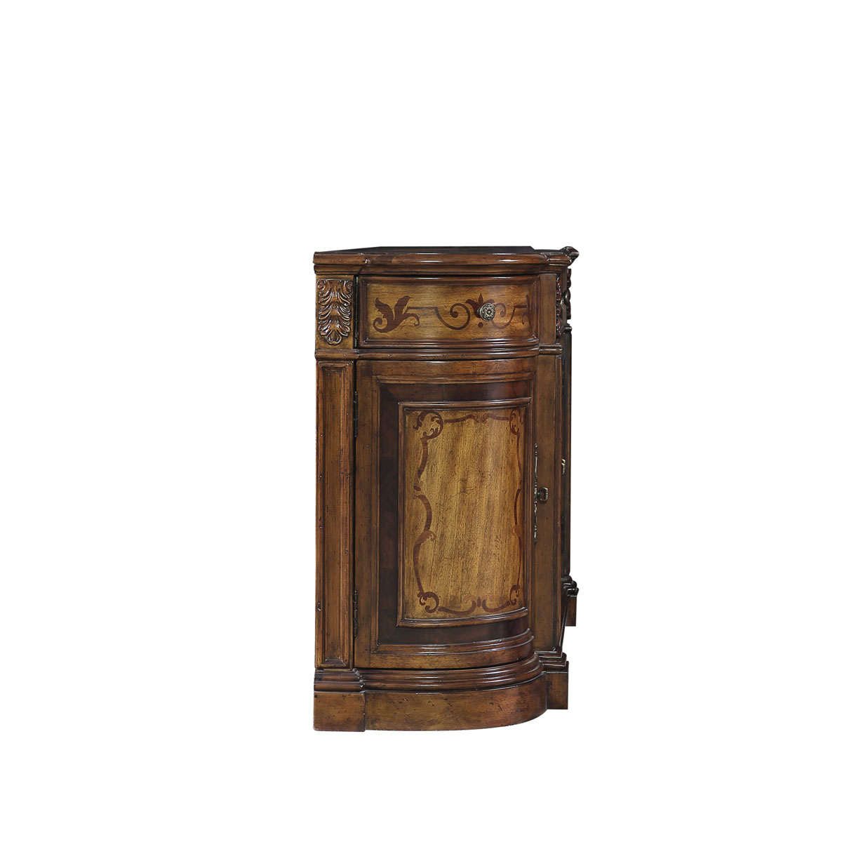 * 這款碗柜是典型的巴洛克風格家具,頂冠上的西洋花雕刻線條優美,頗具動態的藝術美感;底部的手工拼花巧妙融合自然與人文,充分展現了意式家具聞名世界的手工技藝;搭配豐富的層板,更是賦予了它強大的陳列與收納功能。