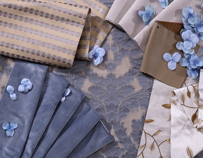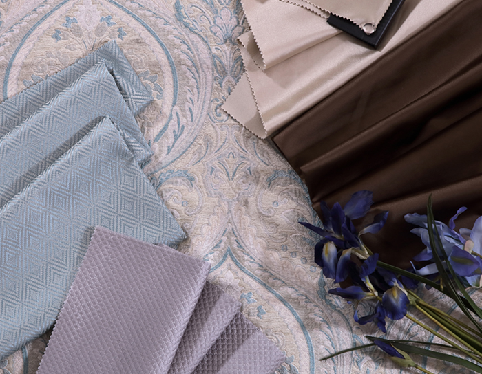 米白色調中加入適當比例的棕色,以天然的古樸抵抗歲月的痕跡;藍色刺繡提花栩栩如生,精致細膩中糅著典雅的矜持,承襲著悠久的傳統工藝,繡制華美藝術。