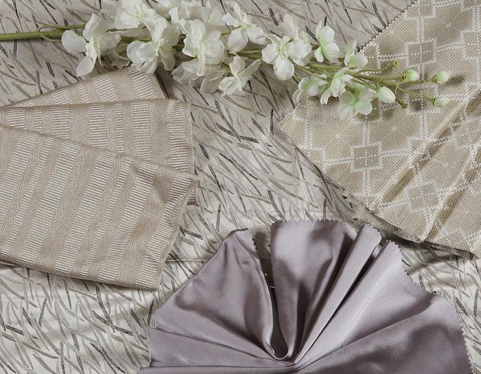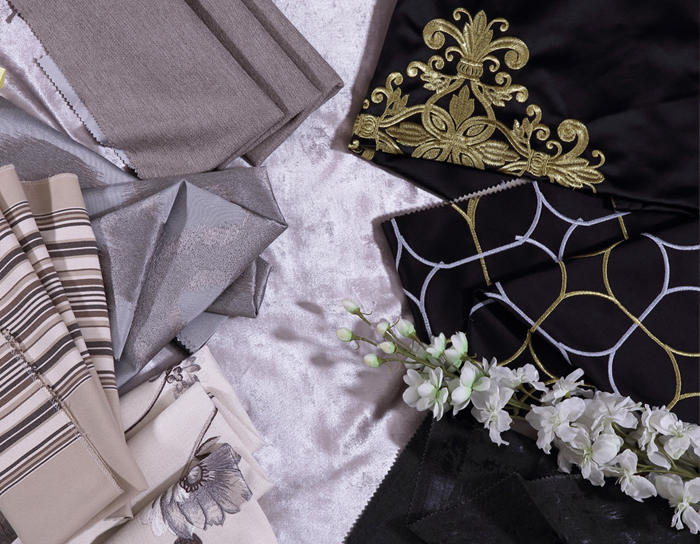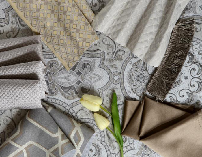 亞麻、絲綢、純棉等多樣的面料材質,層次分明,厚薄相兼。立體布藝和提花刺繡更顯輕盈,同時將濃厚的藝術底蘊盡現,在法式灰的映襯下雅致中帶著侯爵夫人般的貴氣。
