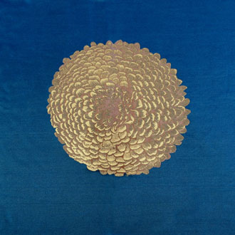 寶藍香檳色調的布帛上印染著大朵大朵的花毛莨圖案憑借其鮮艷多變的色彩與活潑明媚的形態,為人們的生活帶來了無窮的活力。